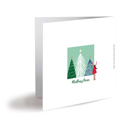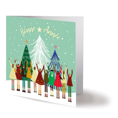 Envoyez vos voeux avec cette carte de voeux professionnelle qui reflète le bonheur d'être ensemble au moment des fêtes de fin d'année. Un visuel tout en optimisme avec de jolis sapins de Noël en arrière-plan !
