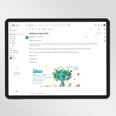 La signature mail est le point final de votre courriel, la dernière impression délivrée. C’est elle qui véhicule l’image de votre entreprise ! Ajoutez au bas de vos mails, une touche festive, à l’image de votre entreprise.